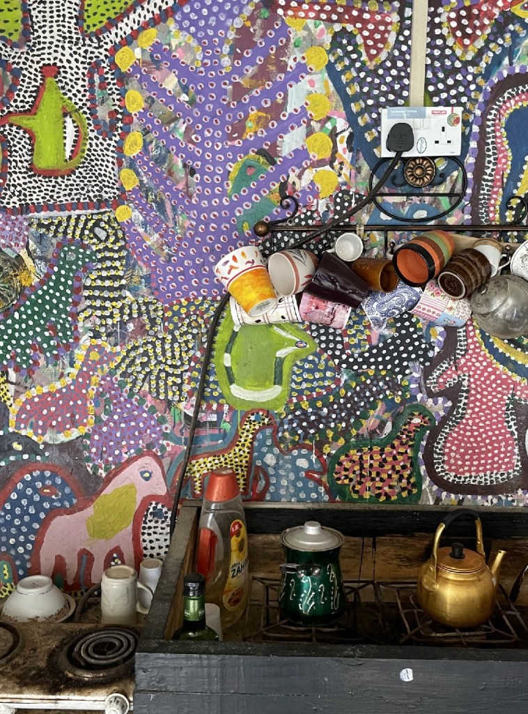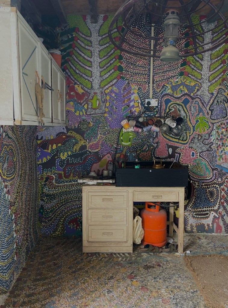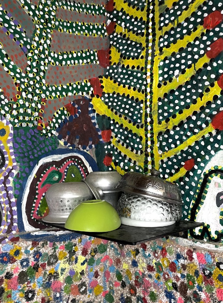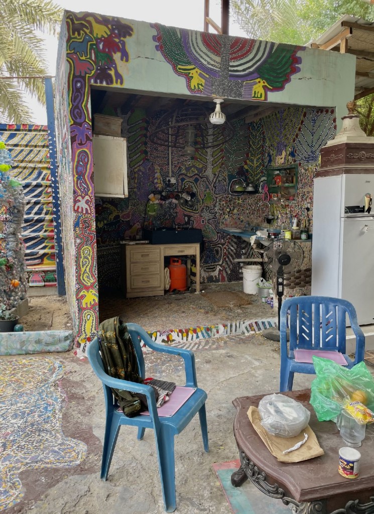 ذكر أيضًا الحاج إبراهيم في اتصال هاتفي بيننا وبينه، أن ولله الحمد، بدأ بعض سكان محافظات المنطقة بالتحرك في هذا الإتجاه، وتزيين منازلهم وأحيائهم، وكان في قمة الفرحة من هذه البادرة. ما جذبنا في الأسلوب الفني للحاج إبراهيم هو التشابه الكبير والموازاة الفنية بينه وبين فنانة البولكا دوتس اليابانية ”يايوي كوساما“ في أسلوبهم بفن التنقيط، مما تبادر في ذهننا مباشرة.