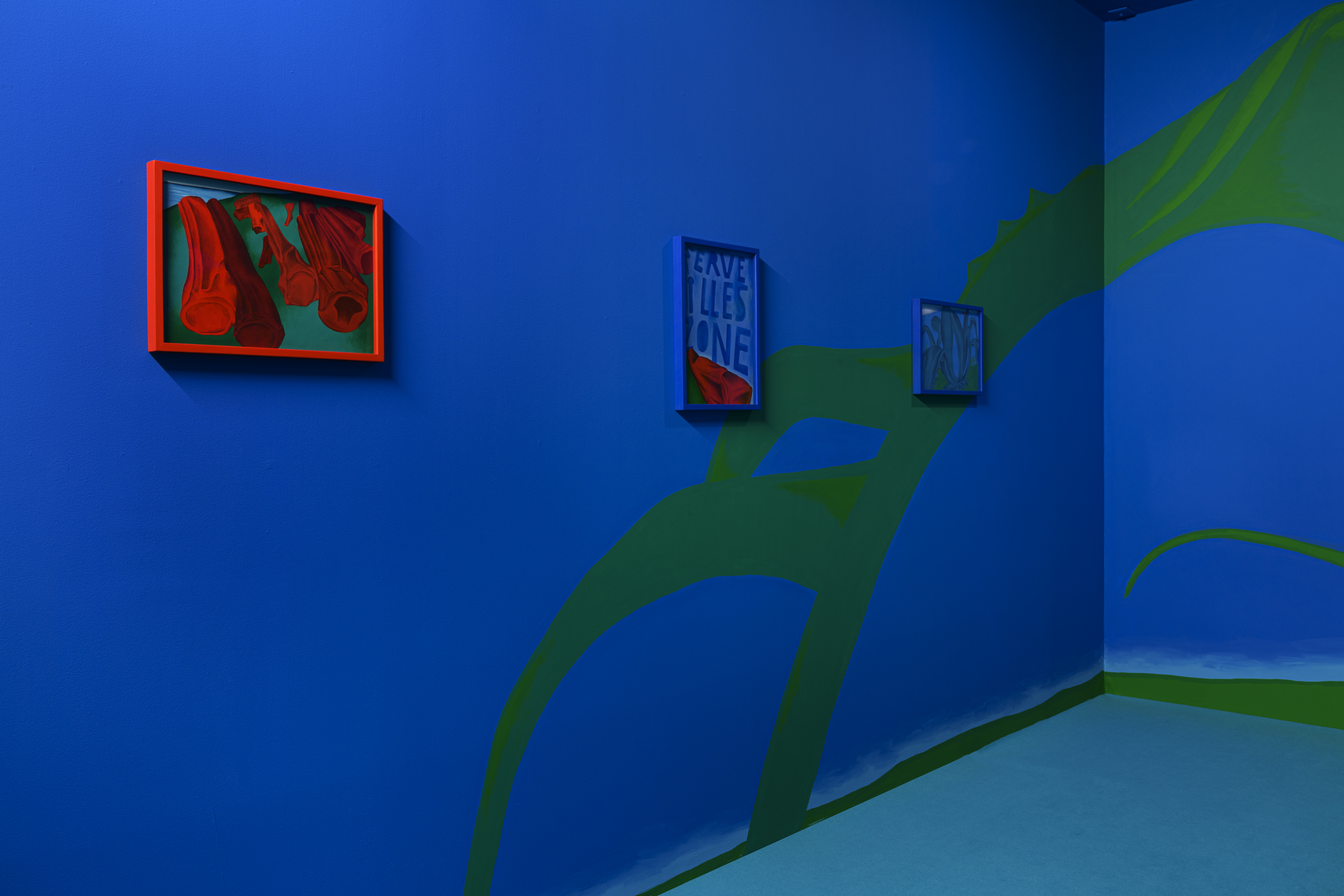 “(Merveilles Zone) is a garden, a pine forest, a seaside beach, in a corner I’d never visited before-southeast, beloved yet unknown at the same time. It’s an enchanting summer painting, a moment of respite where everything stretches out in the warmth of long days and their colors- the hum of crickets, the plants, the sky, objects scattered around the pool, the museums I’ve passed through, and time that feels suspended. This is the intimate stage from which visions saturated with color or lush landscapes emerge, with bold, plant- like, winding, utterly organic lines, as if they were sculptures”.